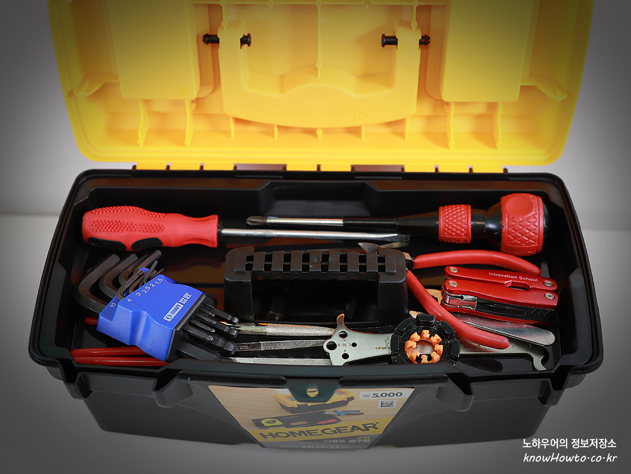 윗칸에는 자주 쓰는 공구들을 넣어줍니다.
