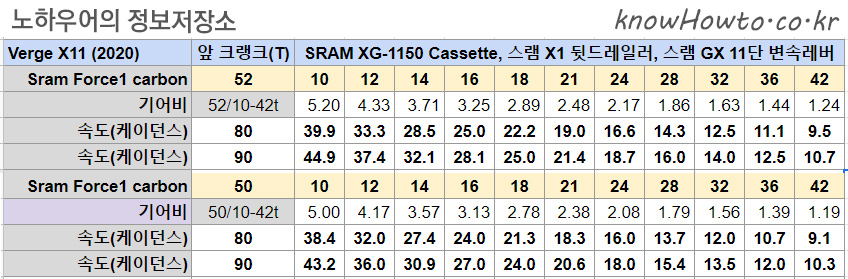 X11의 10-42t가 평지를 달릴 때 고속 주행에서도 하오고개와 여우고개 업힐을 갈 때도 확실히 더 편했습니다.