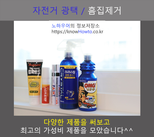 - 불스원 크리스탈 OMG 쇼킹젤 : 흠집제거, 광택, 코팅용. 매우 좋음.