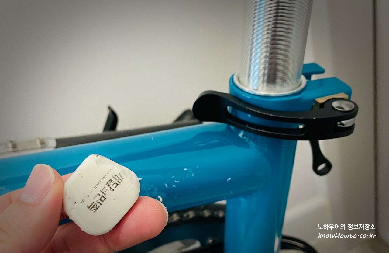 2. 아래와 같이 지우개가 끈적이에 묻고, 꾹꾹 누르면서 지우면 끈적이가 떨어져나갑니다.