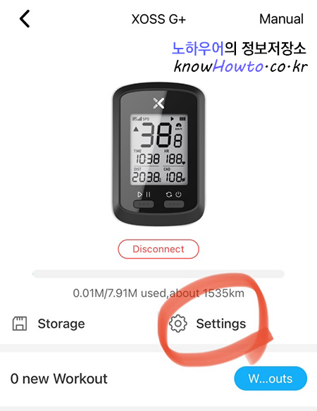 4. 위 화면과 같이 XOSS 연결 후에, XOSS 앱에서 Setting 메뉴로 들어갑니다.