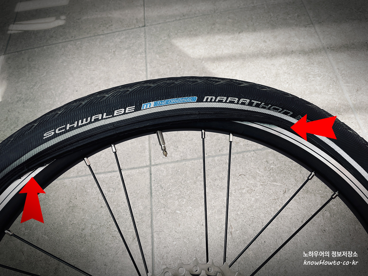 아래는 튜브가 완전히 타이어 안쪽으로 들어간 상태입니다.