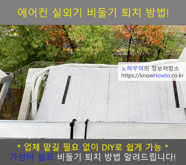 아이방용 작은 실외기의 경우, 1번 방법으로 기울어지게 커버 설치가 불가능하여