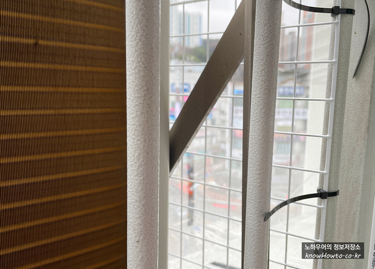 주문했던 아크릴판을 덮고, 난간에 케이블타이로 묶어 주었습니다.