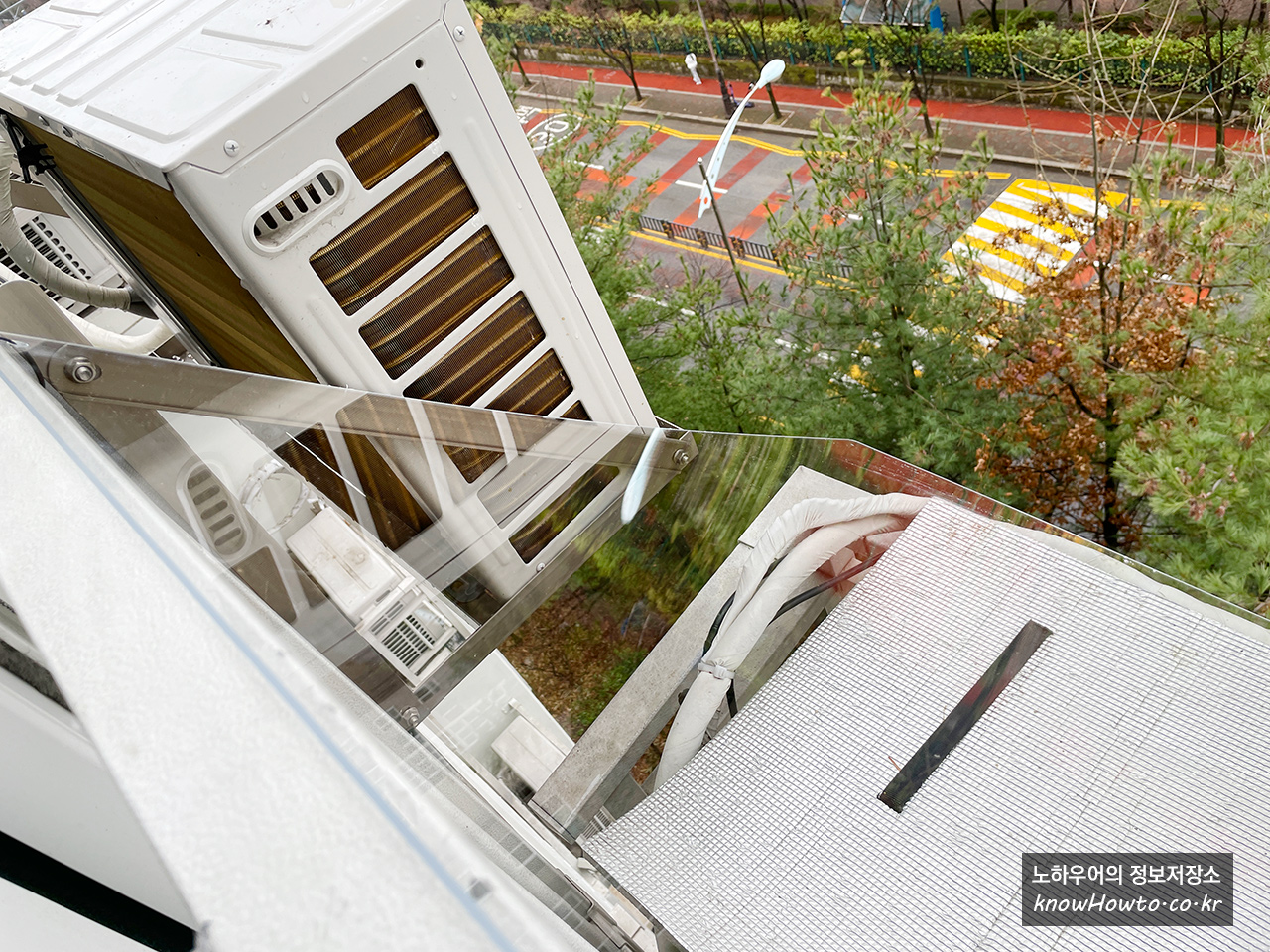 2in1 실외기 한대가 있고, 이 큰 실외기는 위와 같은 1)번 방법으로 경사진 커버를 설치했고