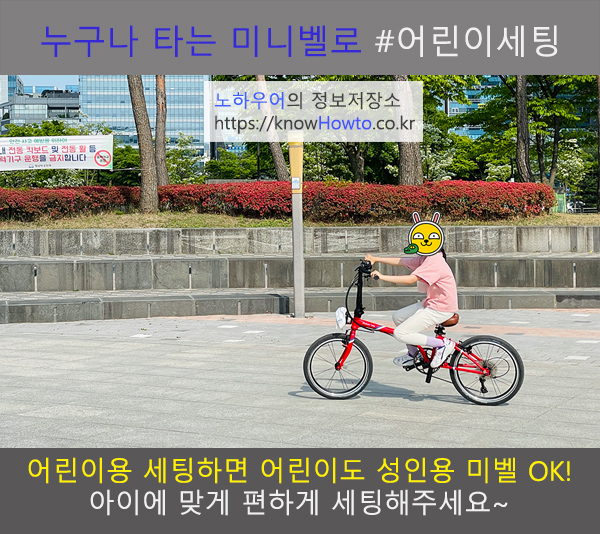 성인용 미니벨로도 어린이용 세팅을 하면 어린이도 편하게 탈 수 있습니다~