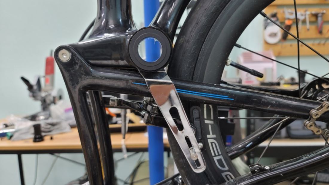 위 2-A), 2-B) 버디 텐셔너처럼 뒷드레일러에 설치합니다.