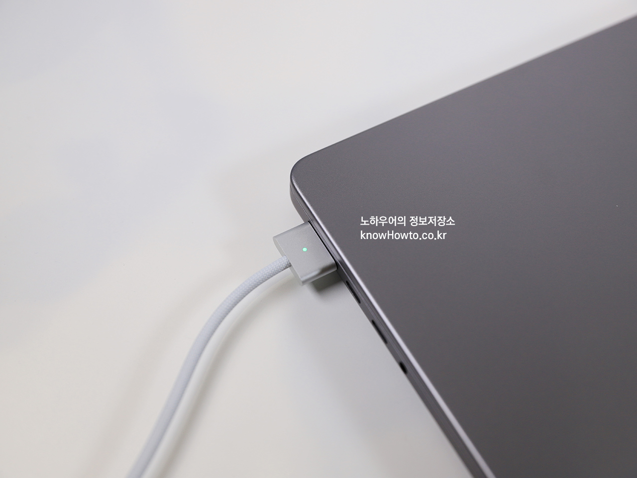 아래는 KOVOL 140W 충전기에 M1 맥북프로 14"를 충전하는 사진입니다.