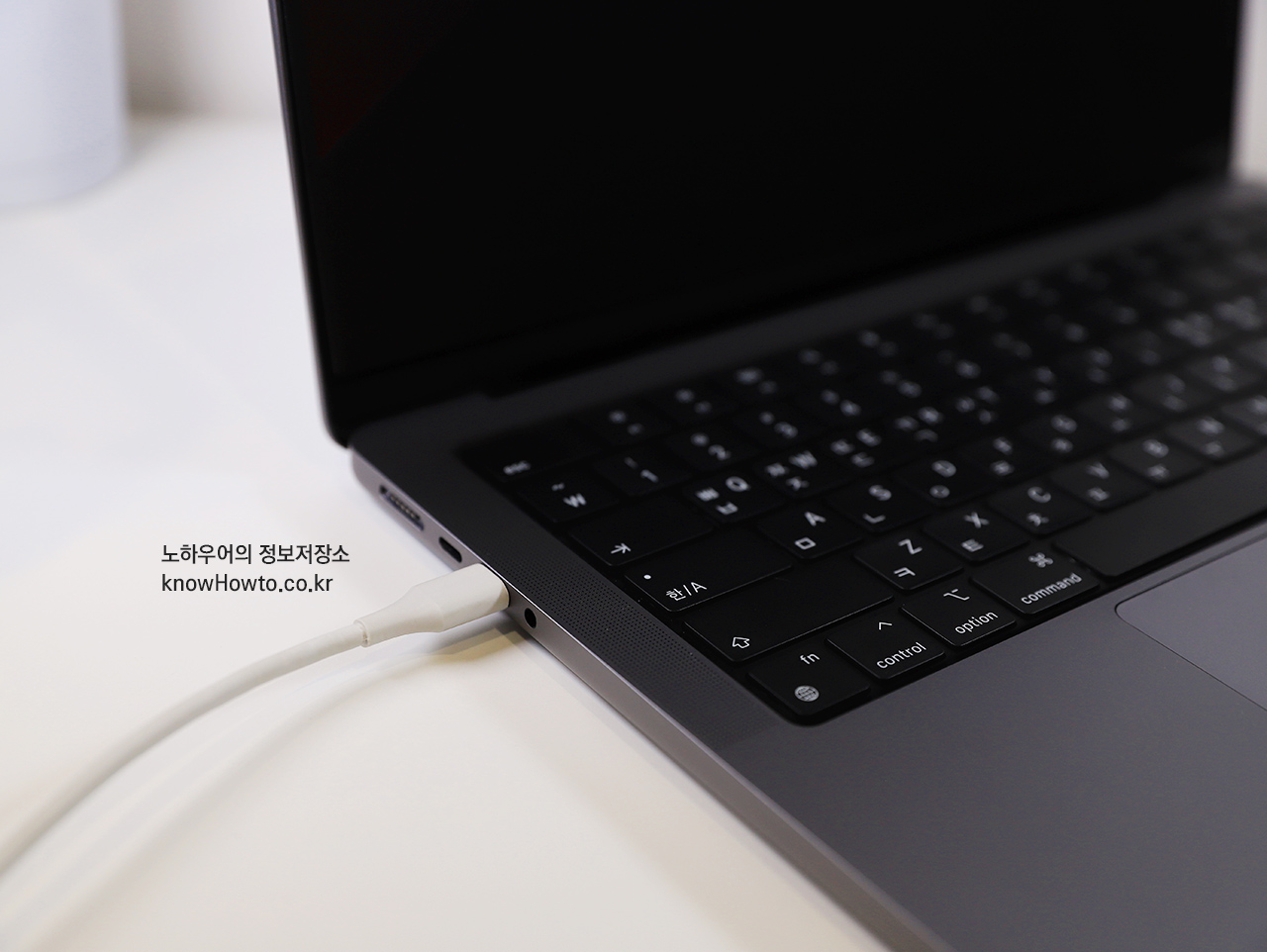 맥북프로에 포함된 USB C 타입 케이블을 KOVOL 충전기의 PD단자에 연결하면 됩니다.