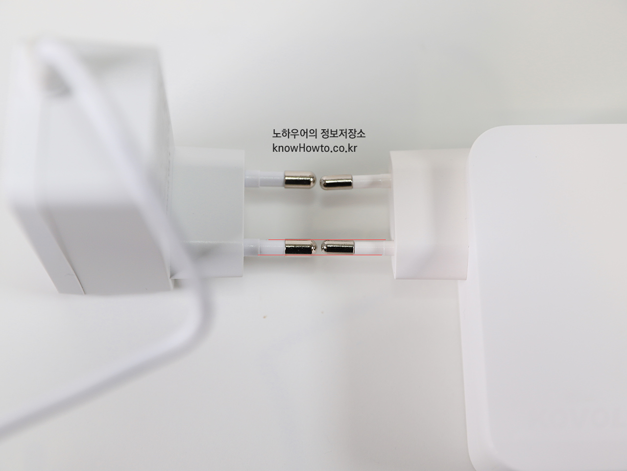 아래 좌측은 220V 한국 플러그이고, 우측은 KOVOL 140W 충전기 입니다.