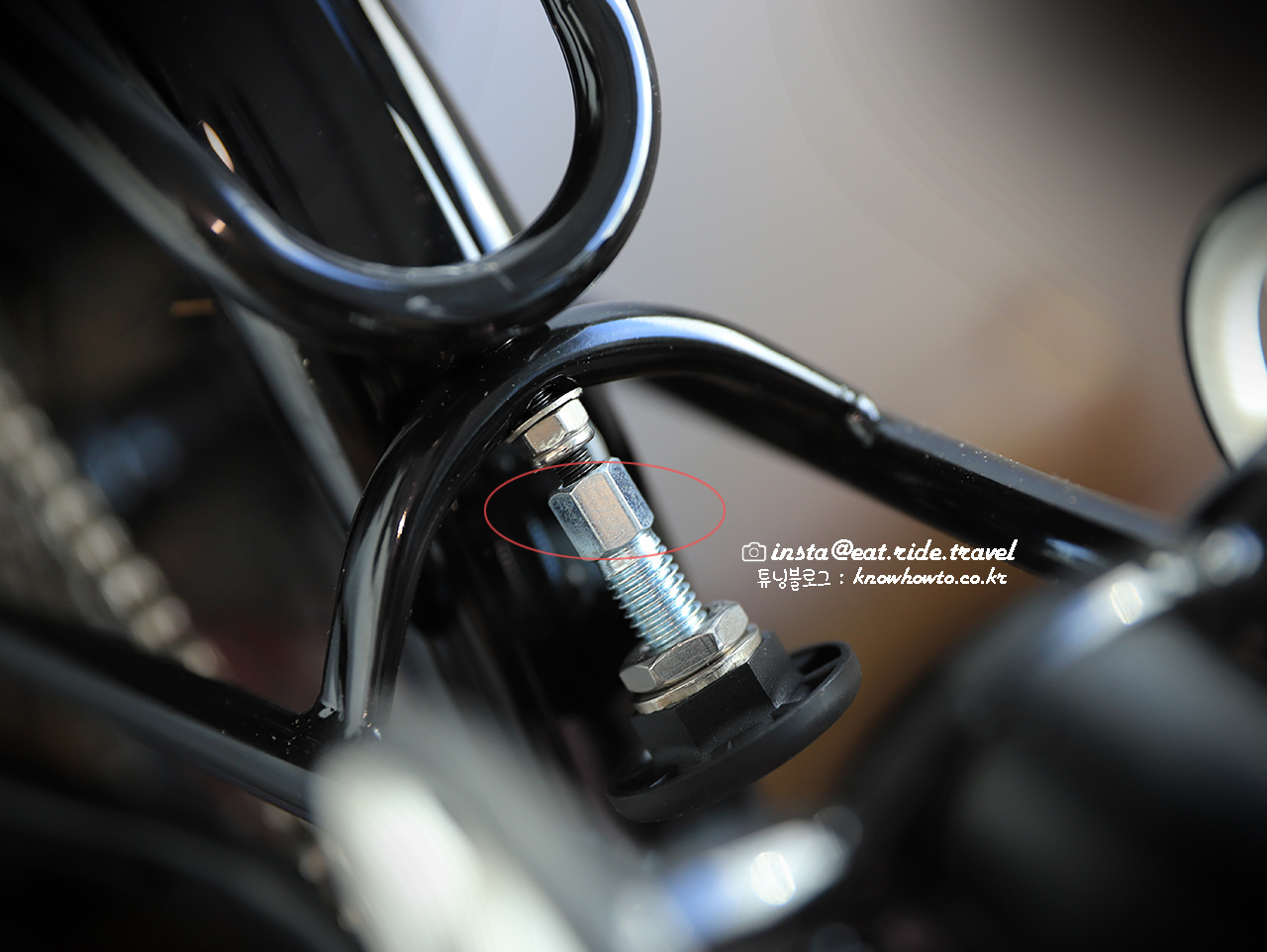 9. 원래 후크있던 자리에 장착하면 됩니다. 렌치의 육각부분이 QR에 물리면 됩니다. (상->하 방향)