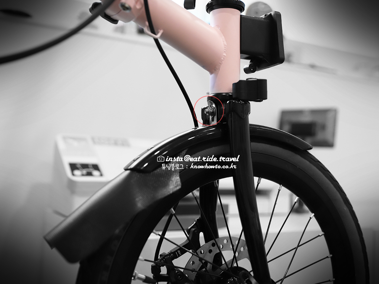 유사브롬톤 민트의 경우 디스크브레이크 간섭을 피하기 위해 저렇게 설계된 것 같습니다.