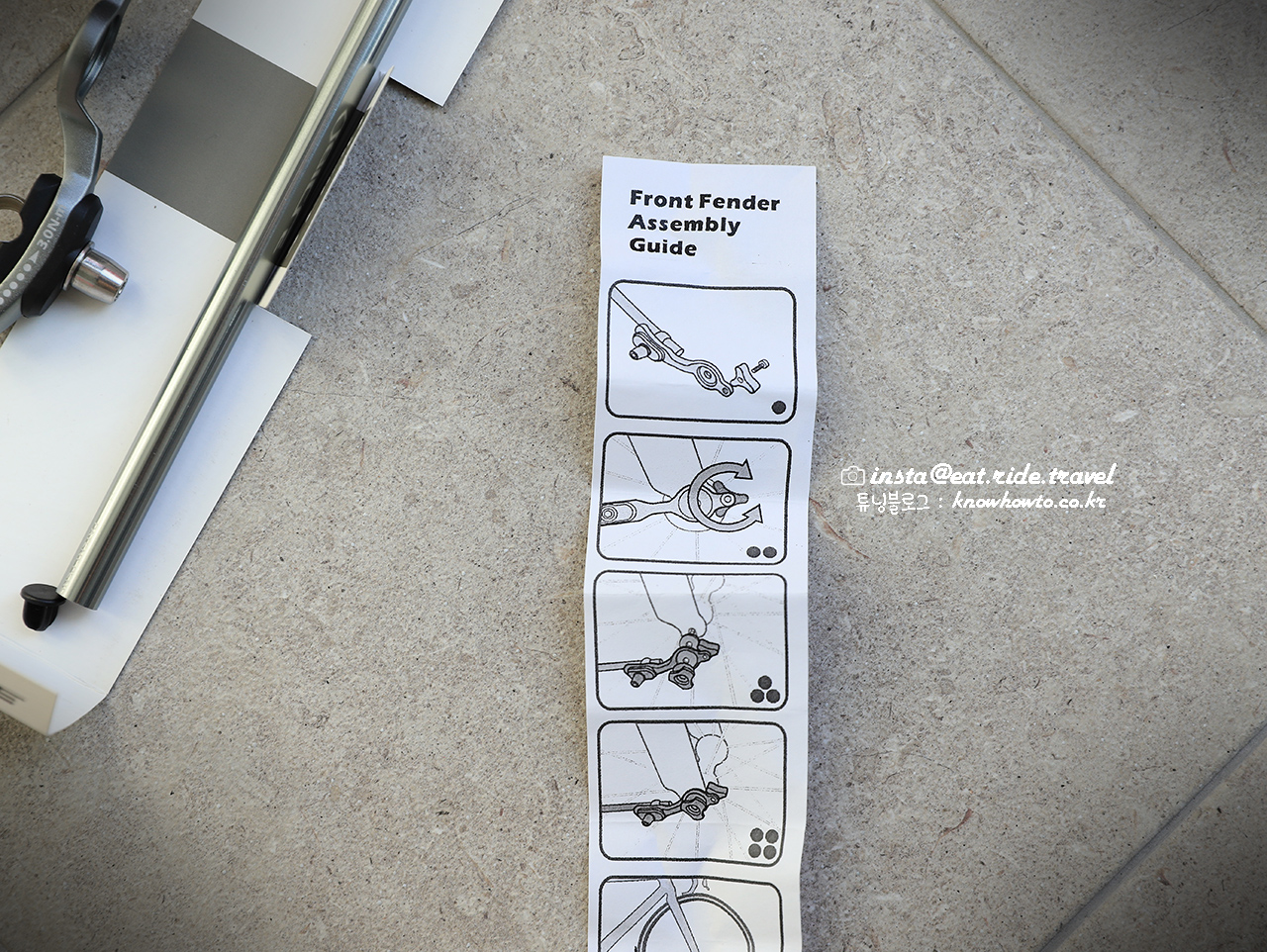 그리고, 제일 중요한 부분!! 타이어와 일직선이 되도록 아래 사진과 같이 조정해서 고정해 줍니다.