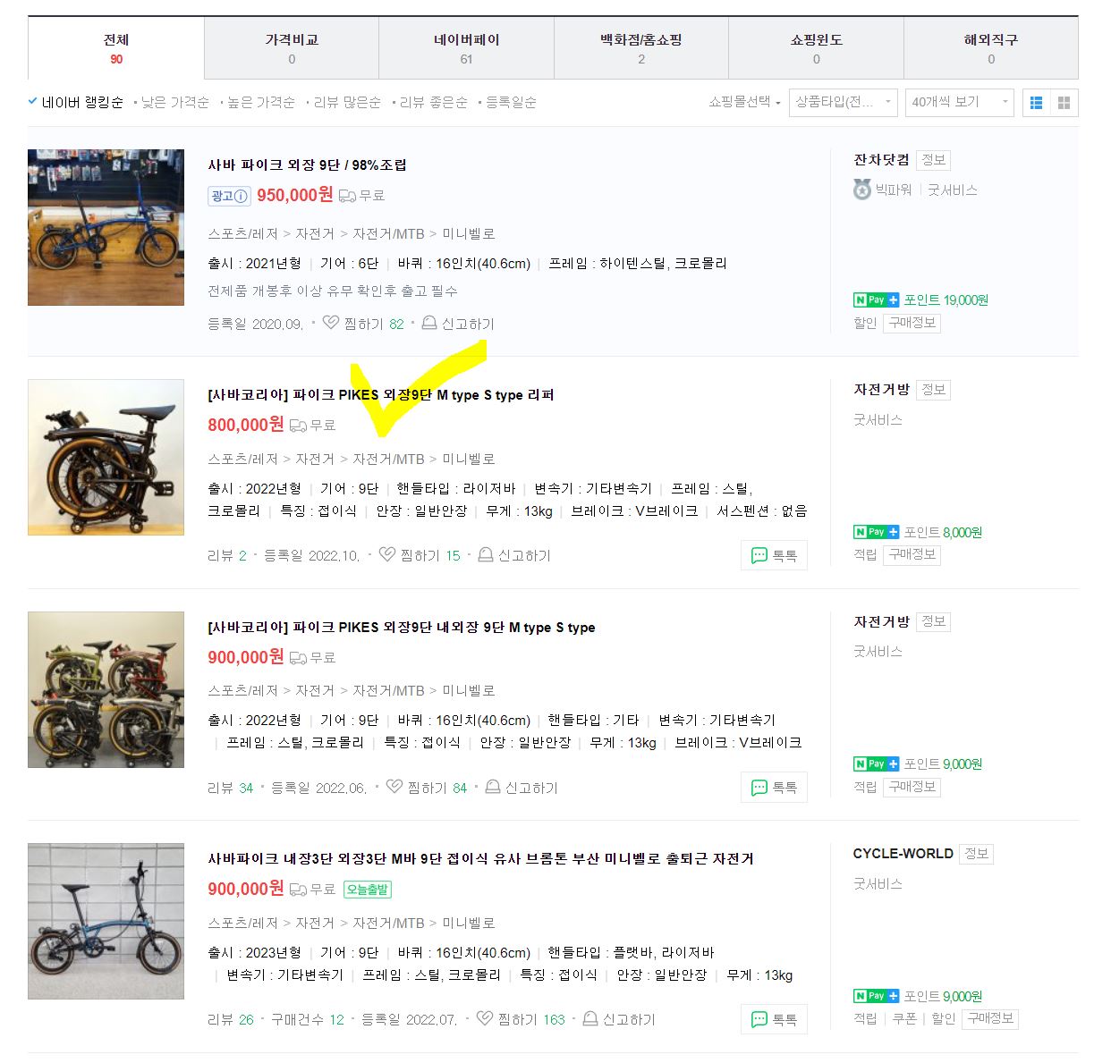 이후 민트와 썬리문이 70만원대로 출시되면서 100만원가량이던 파이크의 인기가 푹. 죽어버렸습니다.