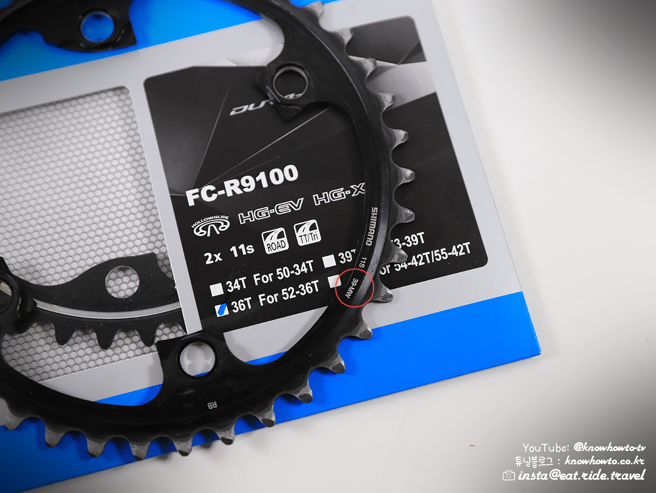 위 사진의 박스에도 써있지만 새로 구매한 체인링은 36t 입니다.