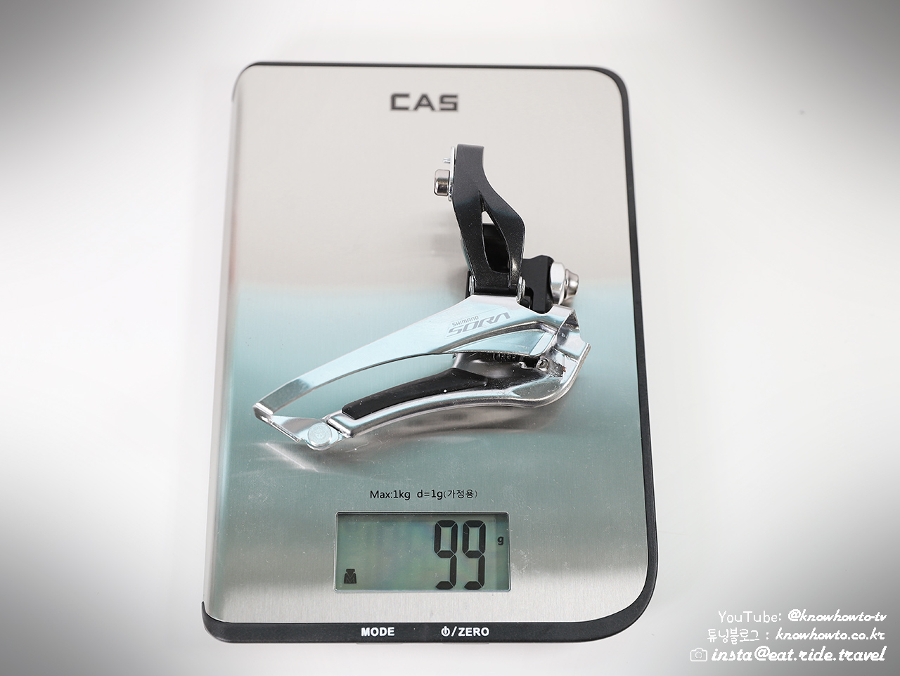 시마노 소라 앞드레일러 무게는 99g 입니다.