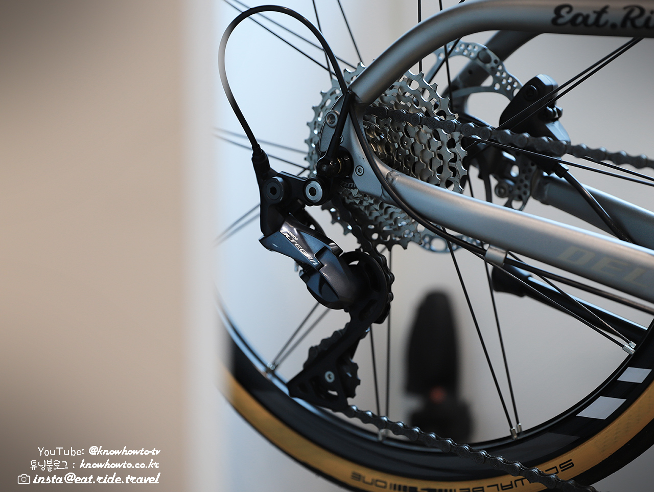 앞2단 x 뒤9단 = 18단 인데요, 9단 시마노 소라 구동계가 변속도 잘되고 좋은 구동계이지만