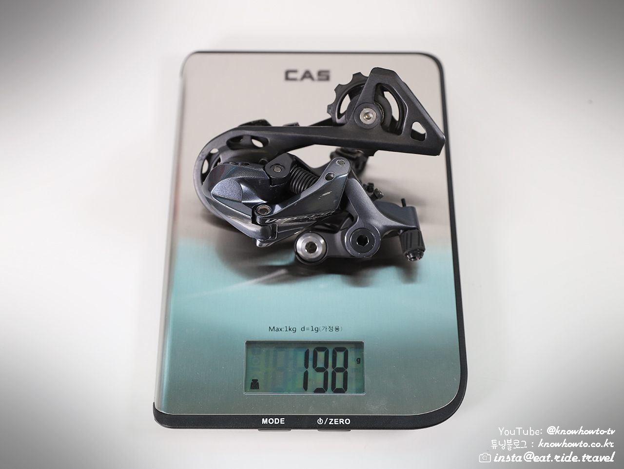 시마노 울테그라 뒷드 무게는 198g 이네요. (RD-R8000)