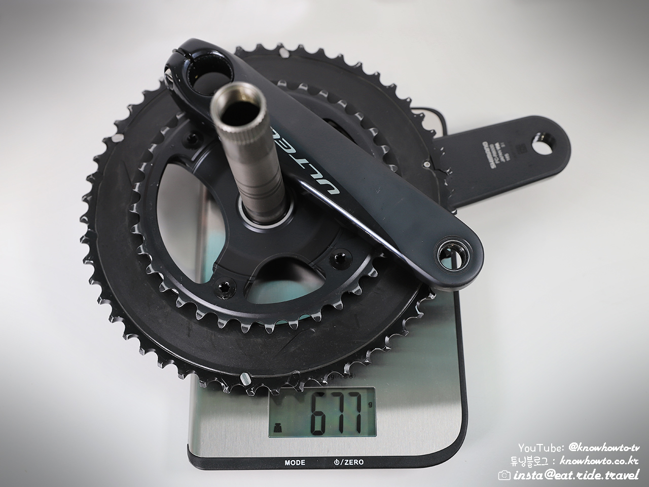 울테그라 R8000 크랭크셋(52/36t)은 677g 입니다.