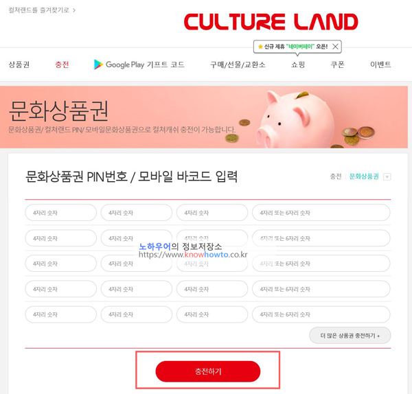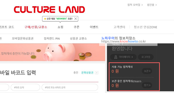 3. 아래와 같은 화면이 나옵니다. 여기서 구매한 문화상품권을