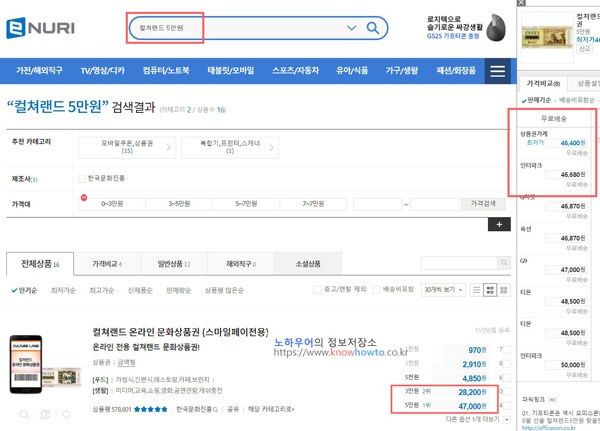 5%나 6%밖에 없으면 에누리에서 최저가 검색을 해봅니다.