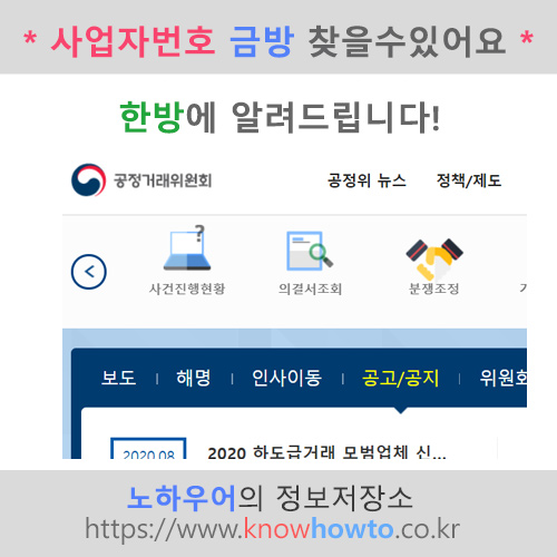 오늘은 공정거래위원회 홈페이즈를 통해 사업자등록번호 조회 방법을 알아보았습니다.