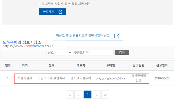 구글코리아의 경우 통신판매업자로 등록되어 있기 때문에 여기로 들어가야 하는 것이고