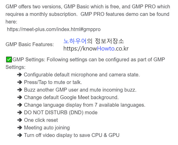 6. GMP(Google Meet Plus)는 2가지 버전을 제공합니다.