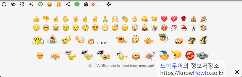 7. 위 이모티콘들 중에서 아무거나 클릭하면 바로 이모티콘을 날릴 수 있습니다 ;)
