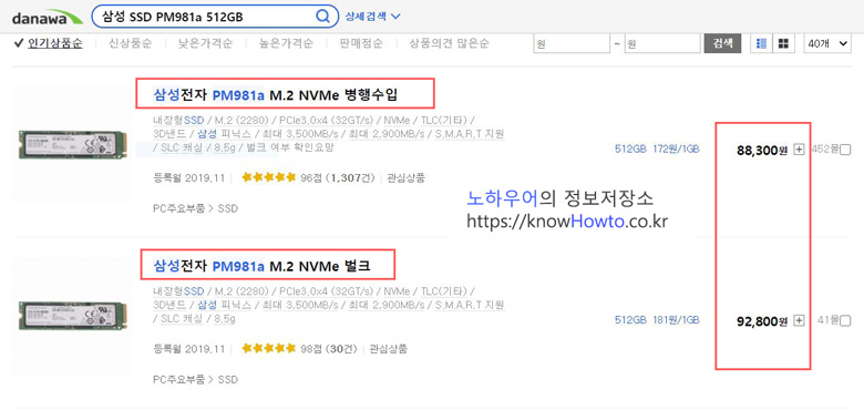 | 삼성 PM981a 512GB SSD 스펙 www.knowHowto.co.kr |