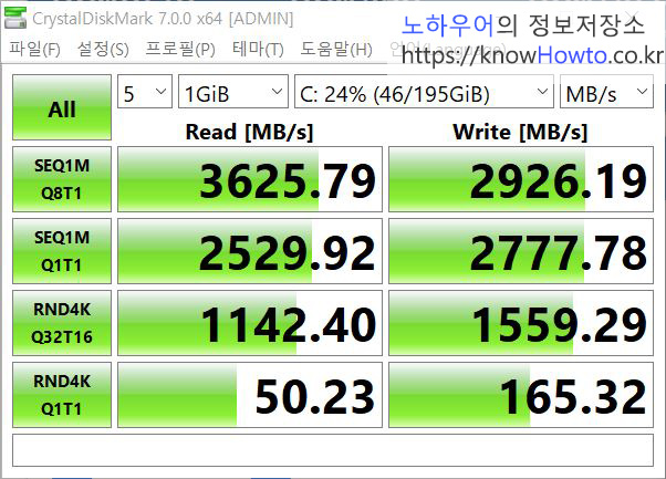 스펙상 최대 읽기속도가 3,500MB/s인데 3,625MB/s가 나왔고