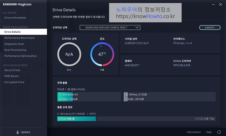 추가적으로 삼성 SSD 관리를 위해서 삼성전자에서는 삼성 매지션(Samsung Magician) 프로그램을 지원합니다.