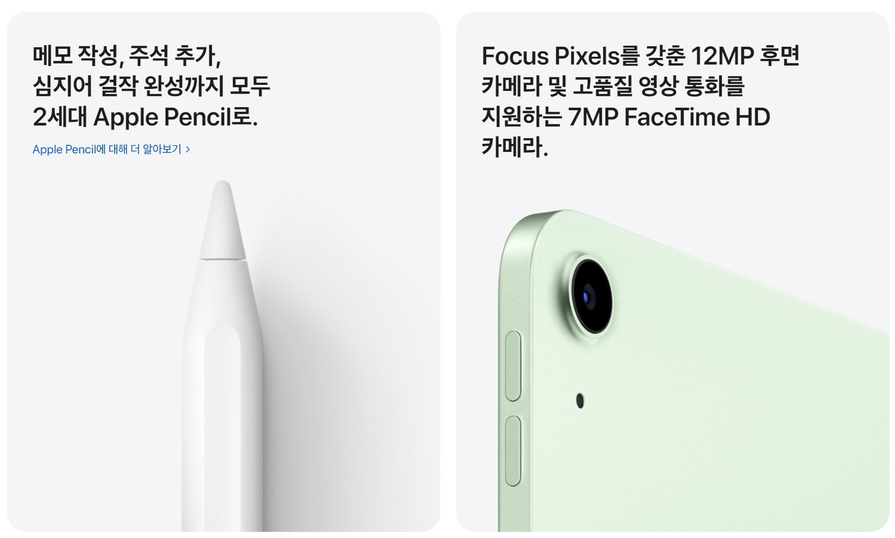 카메라 역시 아이패드 8세대나 아이패드 에어 3세대 대비 모두 향상되었습니다.