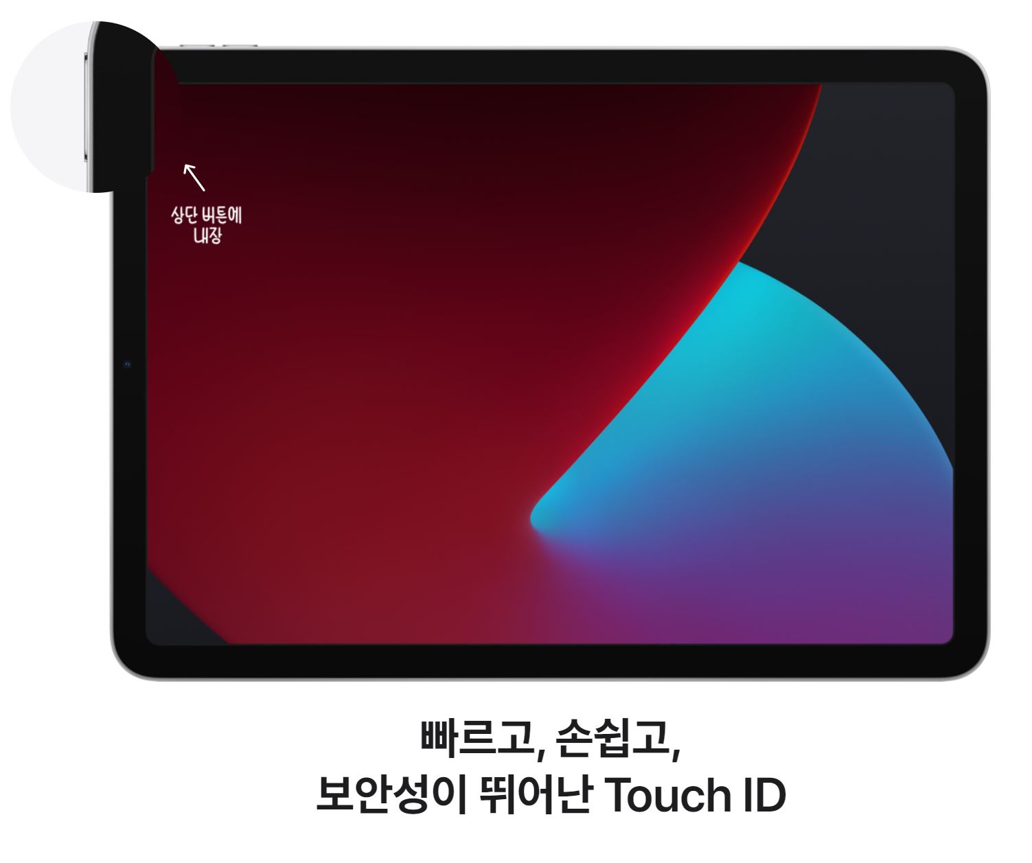 상단버튼으로 내장되어 아이패드 프로와 같은 전편 풀스크린을 이뤘습니다.
