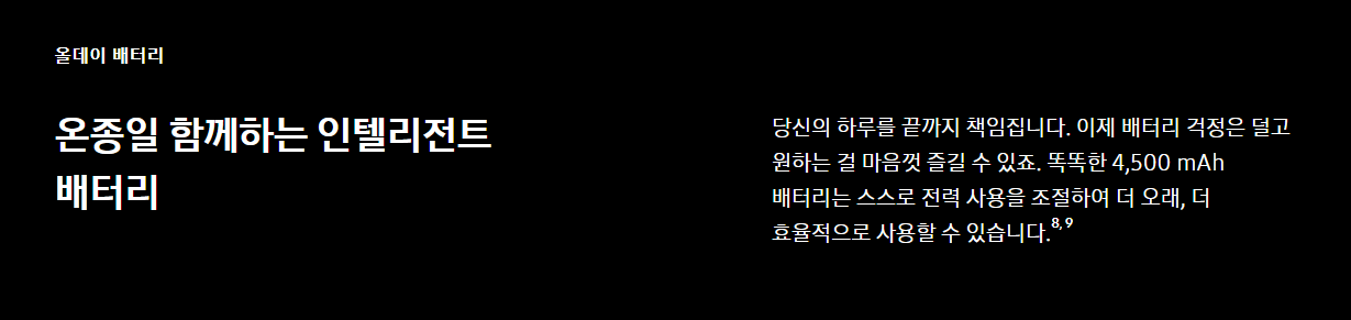 아까 살펴봤지만 일상생활에서 제일 중요한 배터리 용량은 4500mAh로