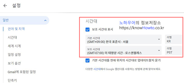 [ 구글캘린더 보조시간대 설정 방법 ]