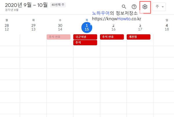 1. 캘린더 우측 상단, '설정' 아이콘을 클릭합니다.