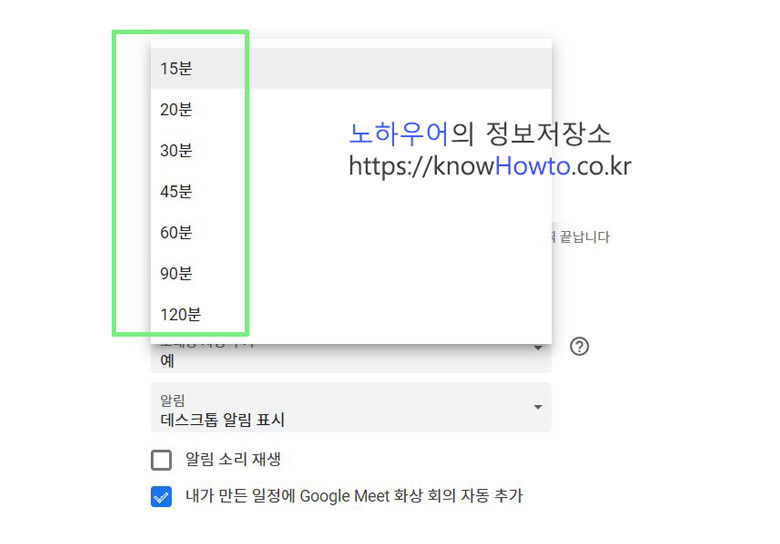 [ 구글캘린더 - 기본기간 변경하는 방법 ]