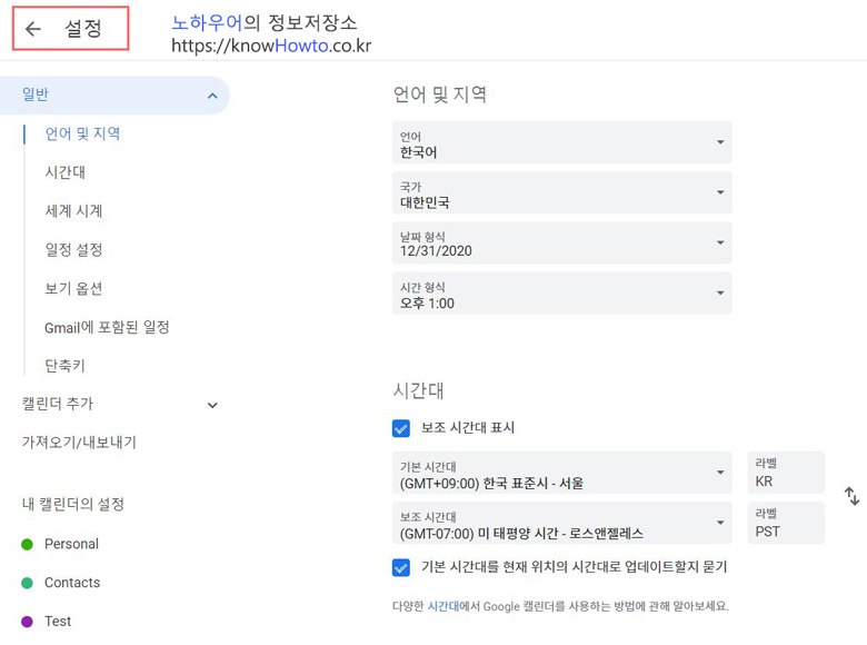 구글캘린더 완전 활용법2 - 보조시간대 및 세계시간 설정하기