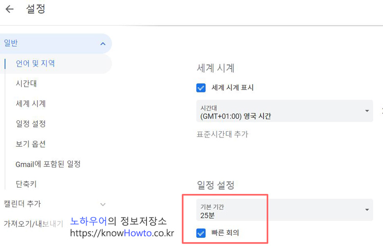 구글캘린더 설정에 보면 '빠른 회의'라는 메뉴가 있습니다.