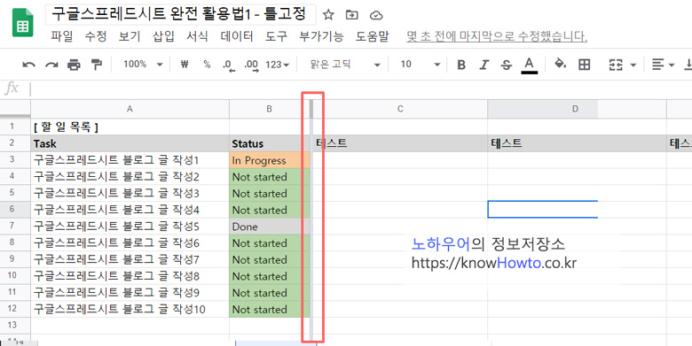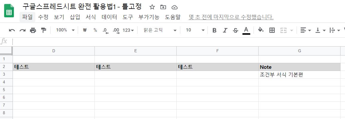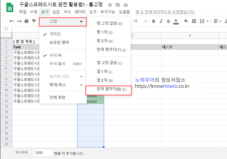 구글시트에서 기본 중 하나인 구글스프레드시트 틀고정 방법과