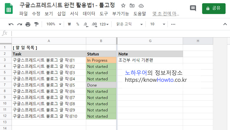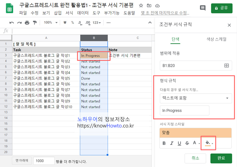 엑셀이나 구글스프레드시트나 모두 조건부 서식을 사용하지 않으면 앙꼬없는 찐빵이죠!