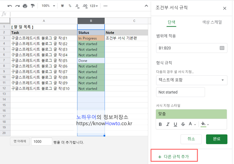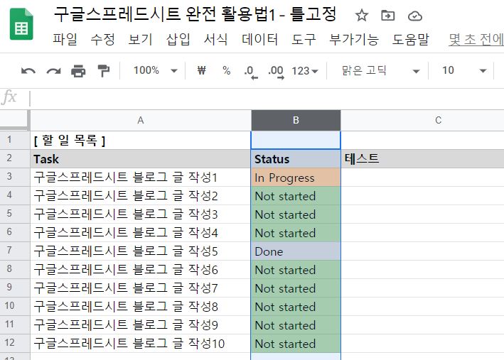 3) Done (완료) 이 세 가지에 조건부 서식을 걸어보겠습니다.