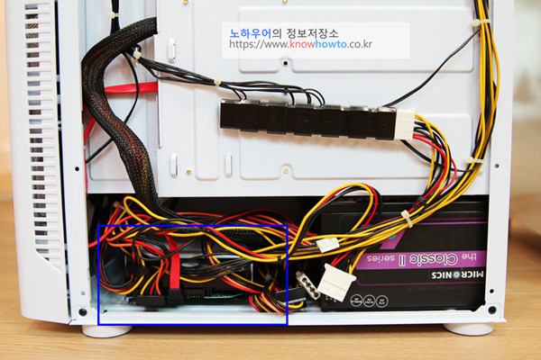 SATA 케이블이 뒷쪽에 있는 3.5" HDD와 겨우 닿았네요.