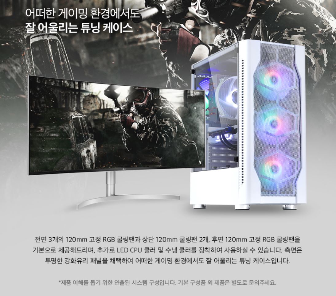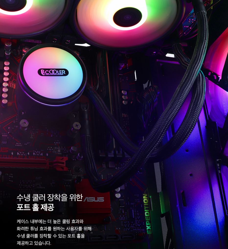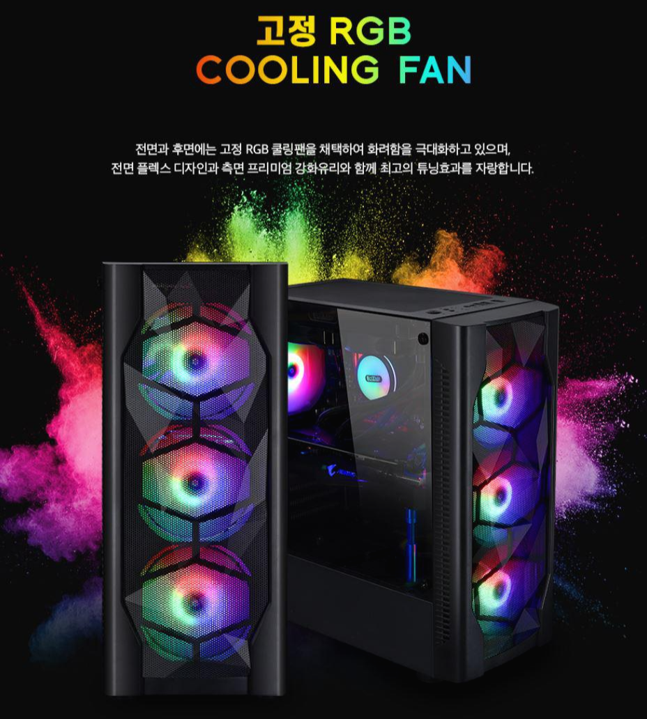 전면 3개 RGB팬과 후면 1개 RGB팬은 디자인적인 요소와 함께 PC 쿨링성능을 높여주며