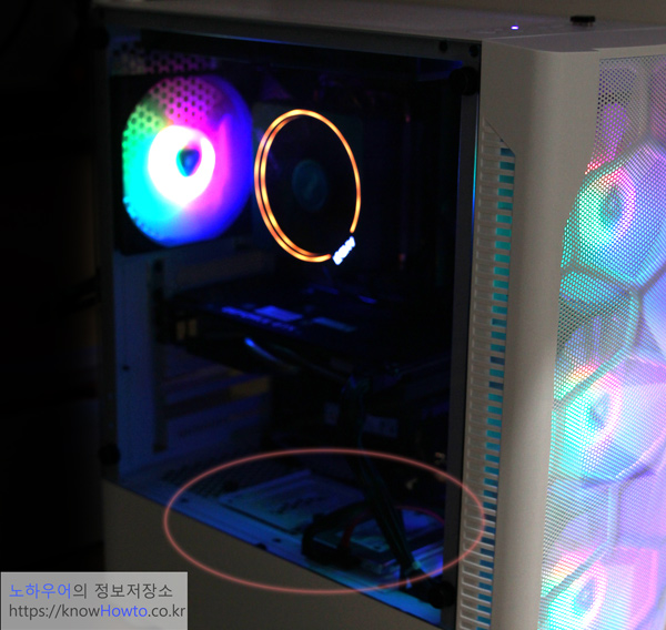 1. HDD 장착슬롯이 뒷면 파워 옆에 있고, SSD 장착슬롯은 전면 강화유리 뒤에 있어