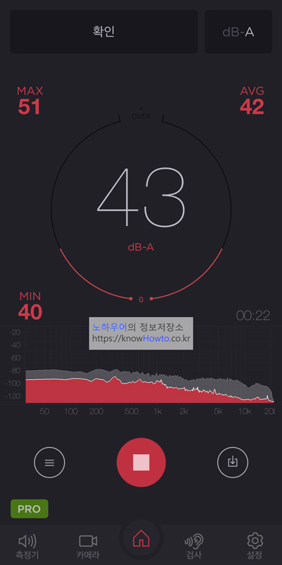 소음측정기(dbMeter)로 측정해보니 42~51db가 측정되었습니다.