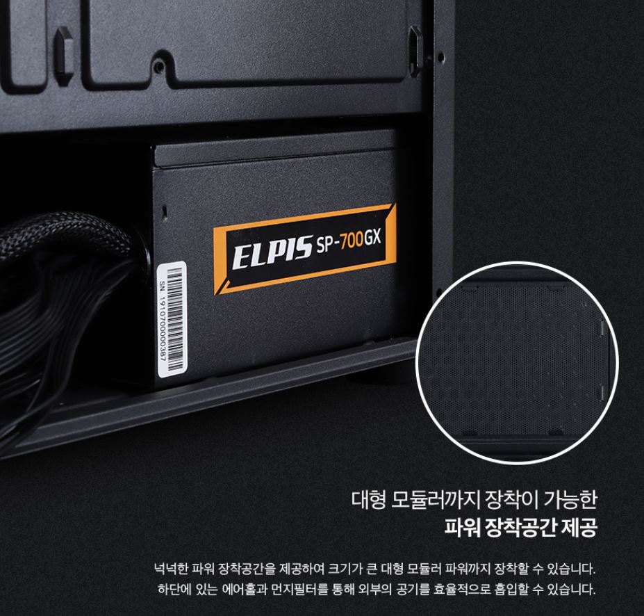 따라서, 일반 파워 사이즈가 아닌 대형 모듈러 파워를 쓰기 원하시는 분들도 설치가 가능합니다.