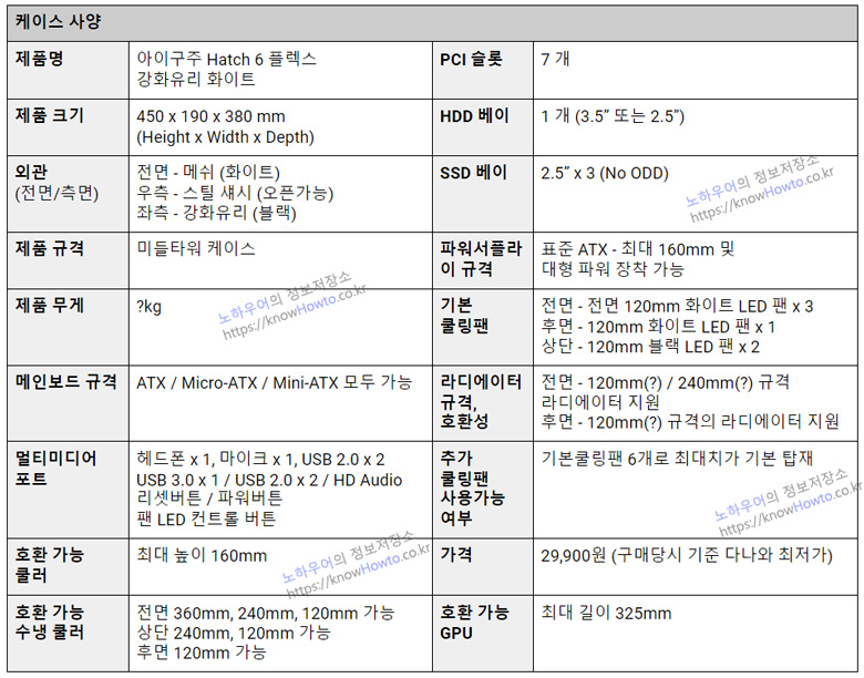 가성비 좋은 데스크탑 PC 케이스 아이구주 해치6 (Hatch 6) 플렉스 강화유리 케이스 리뷰를 해 보았습니다.