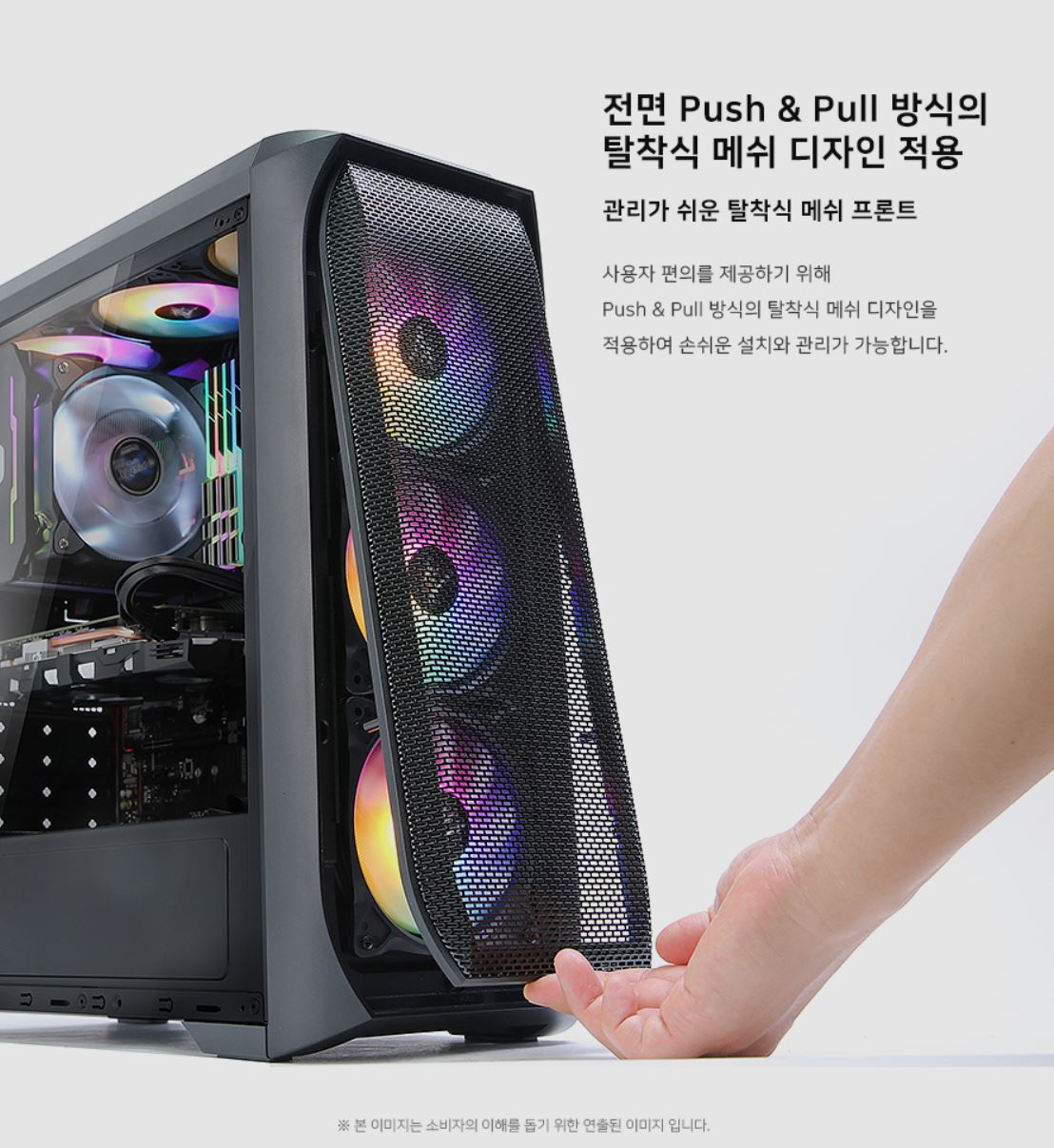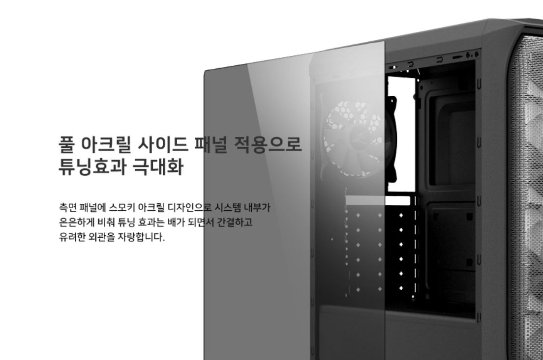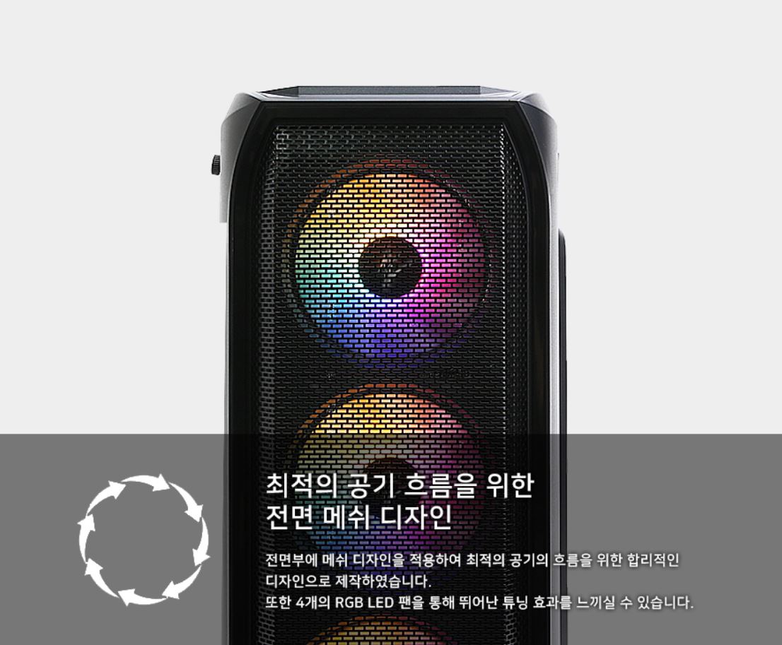 전면 3개 RGB팬과 후면 1개 RGB팬은 디자인적인 요소와 함께 PC 쿨링성능을 높여주며